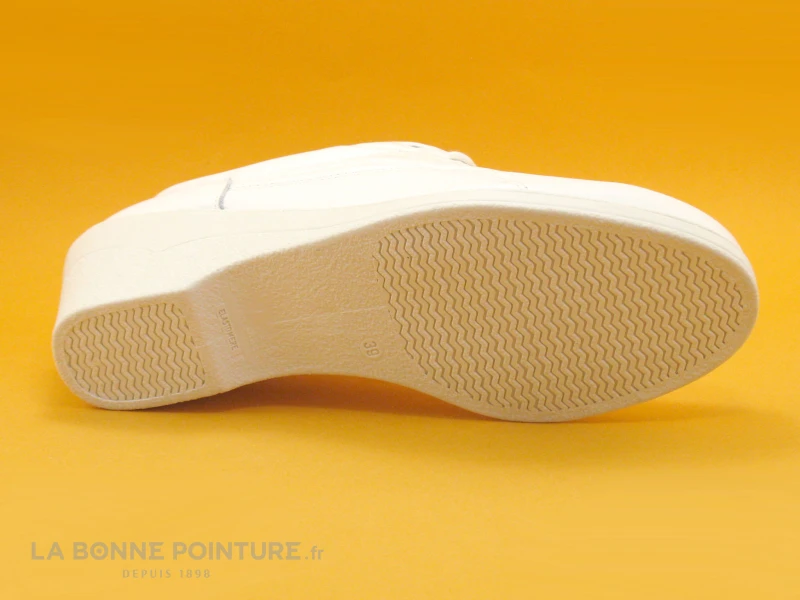 Les chaussures Umo Lucie by Bopy en cuir blanc à semelle compensée, des baskets Femme grand confort à un très bon rapport qualité / prix !