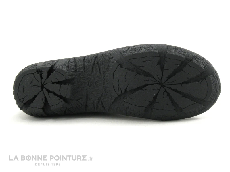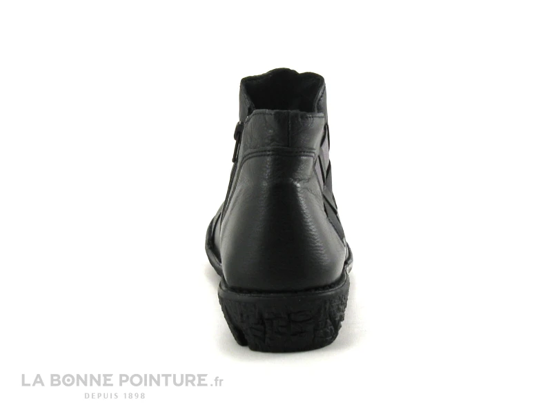 Cette jolie bottine Femme Bran’s 82996 est en cuir souple noir, avec une découpe en biais sur le devant et une pointe arrondie.