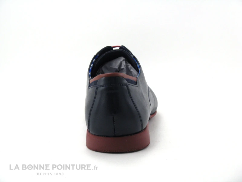 Cette chaussure habillée Homme est en cuir bleu marine foncé, avec un peu de rouge terracota au niveau de l’encolure.