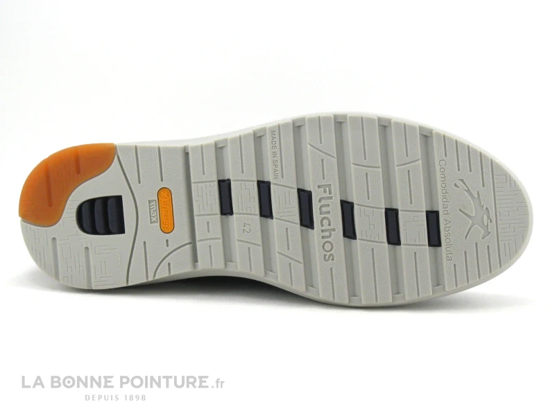 La semelle de marche Fluchos Dynergy® max est ultra flexible, grise avec un rappel orange au talon.