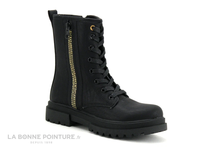 L’autre zip côté opposé permet de fermer rapidement la bottine noire fille Lilybellule Issel.