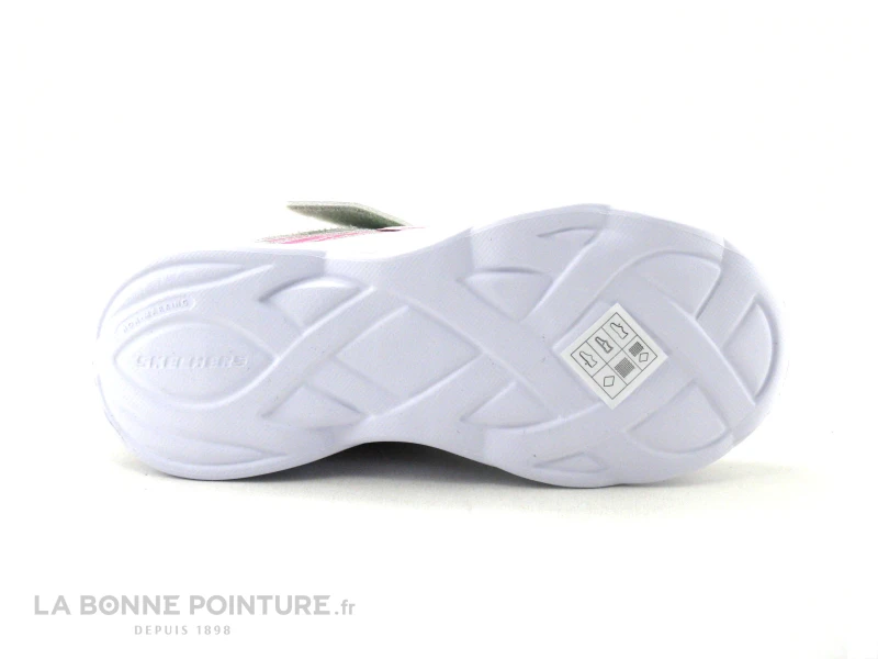 La semelle de marche des baskets enfant Skechers Light fille possède 6 leds qui clignotent en blanc côté externe. Cette semelle est non marquante.