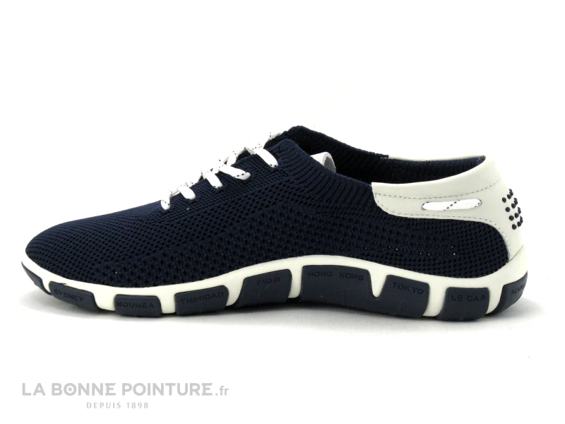 Détail sympa qui caractérise les tennis Femme Tbs Jazaru et Jazaria : la tranche de la semelle gravée de vos prochaines escales : San Francisco, Rio, Tahiti, Bali, Tokyo, Saint Malo…